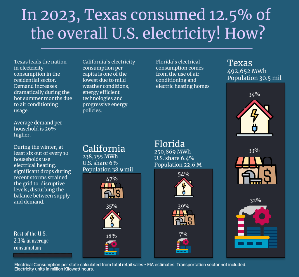 Texas’s independence from the US grid, combined with its dominance as the undisputed leader in electricity consumption and generation, availability of natural resources and climatological conditions make